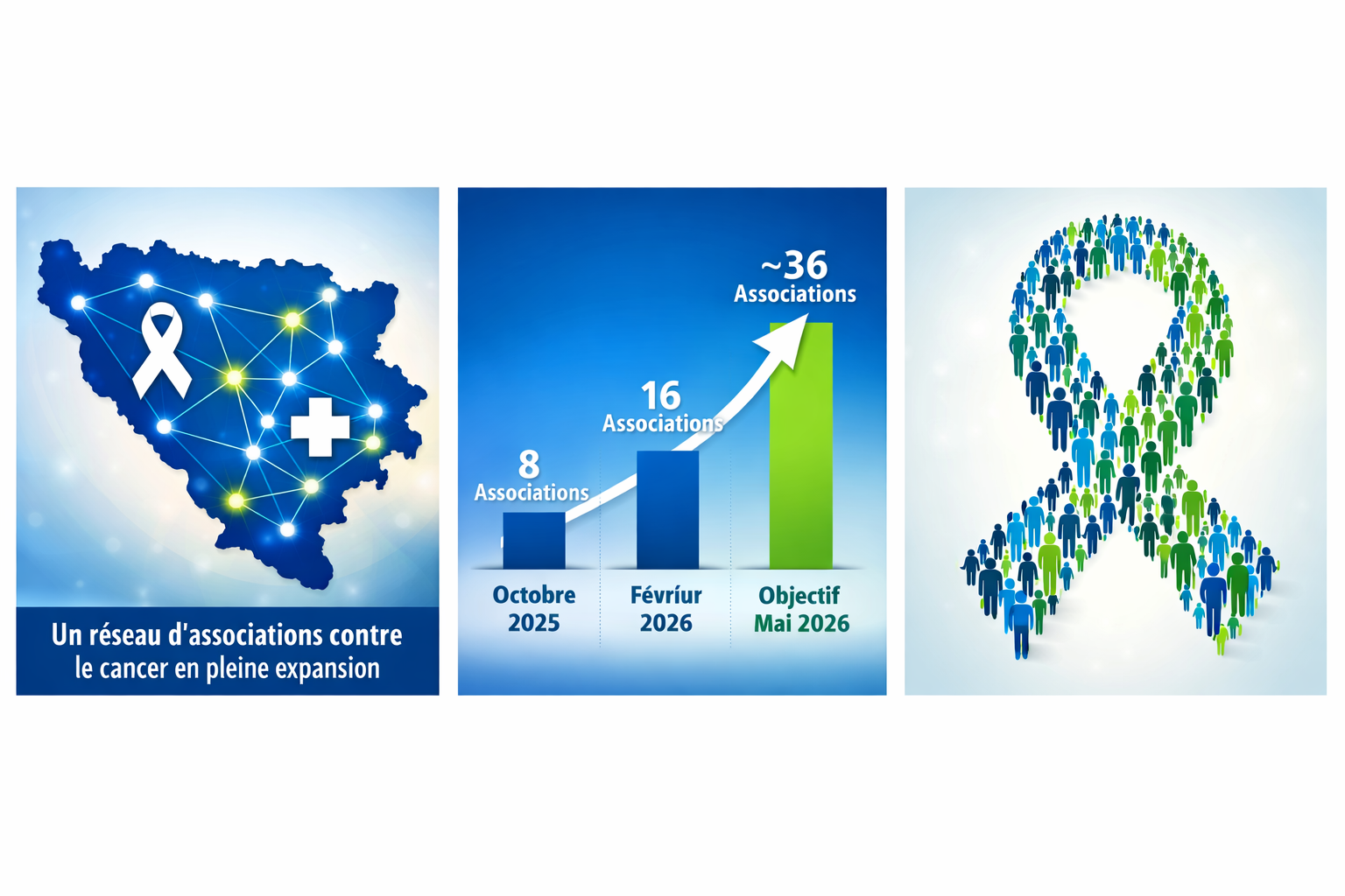 Une pause vient d’être prise pour reprendre, avec force d’ici les prochains jours d’Avril. Les contacts actuels nous laissent espérer une vingtaine de nouveaux adhérents, sur tout le territoire de la Fédération de Bosnie et Herzégovine, d’ici la fin mai 2026. Certaines associations mitoyennes de la Fédération de BIH se rapprochent de nous pour travailler en complémentarité. D’autres mouvements de la Fédération de BIH, centrés sur le cancer du sein, vont être invités à nous rejoindre.